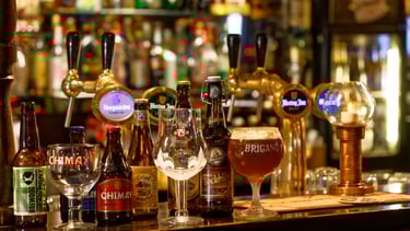 We serveren elk bier in het juiste glas, maar het uitschenken laten we bewust aan onze gasten zelf. Proef zeker ook onze huisbiertjes: Pop’s Finest en Au Nouveau St.-Eloi Bier.